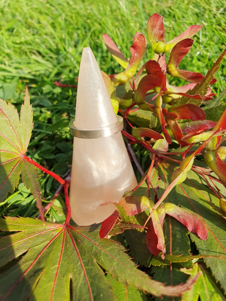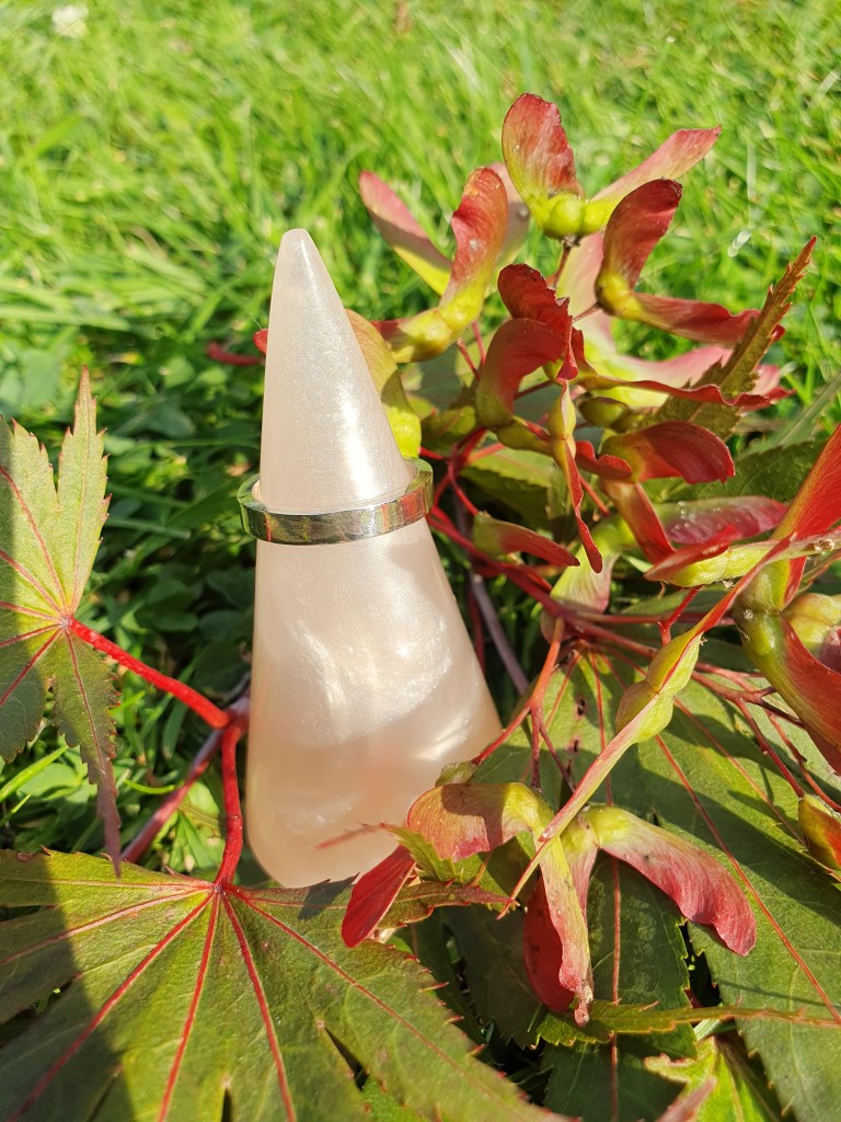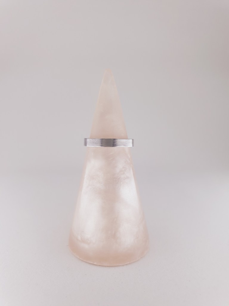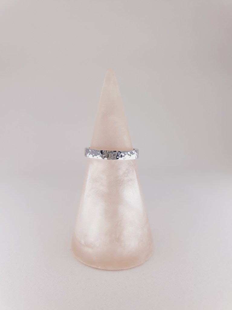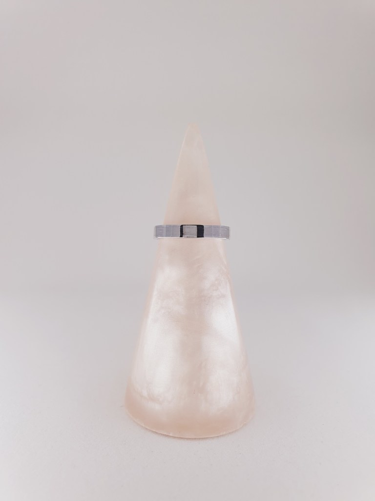 A 3.2 mm x 1.6 mm rectangular band, in a hammered, shiny or satin finish