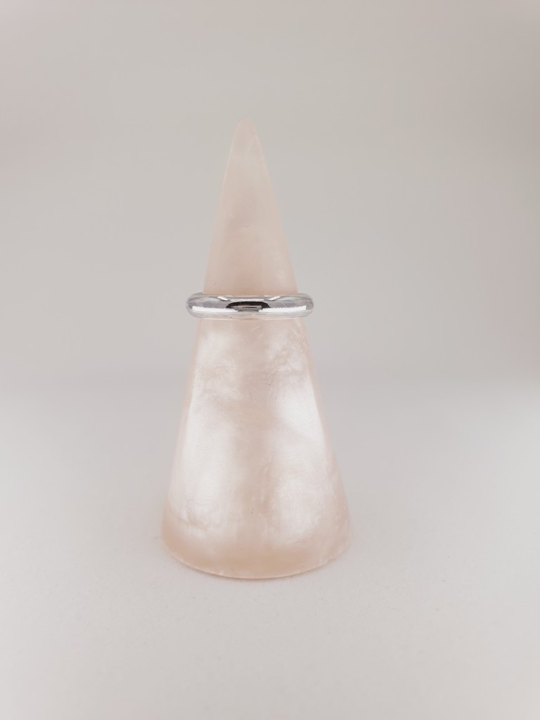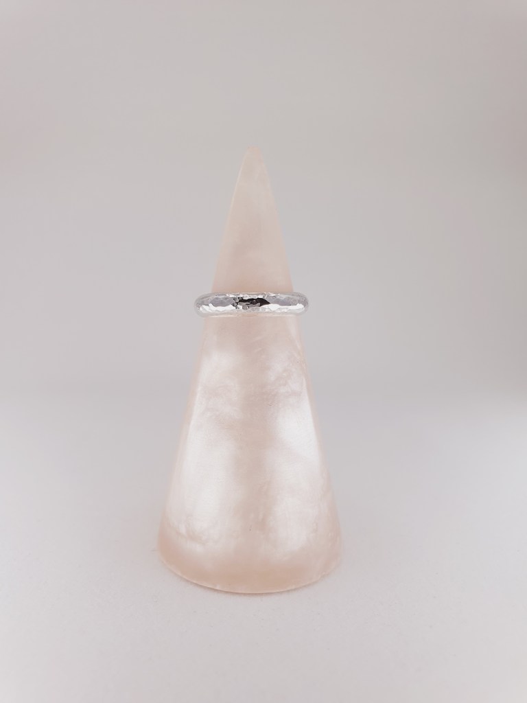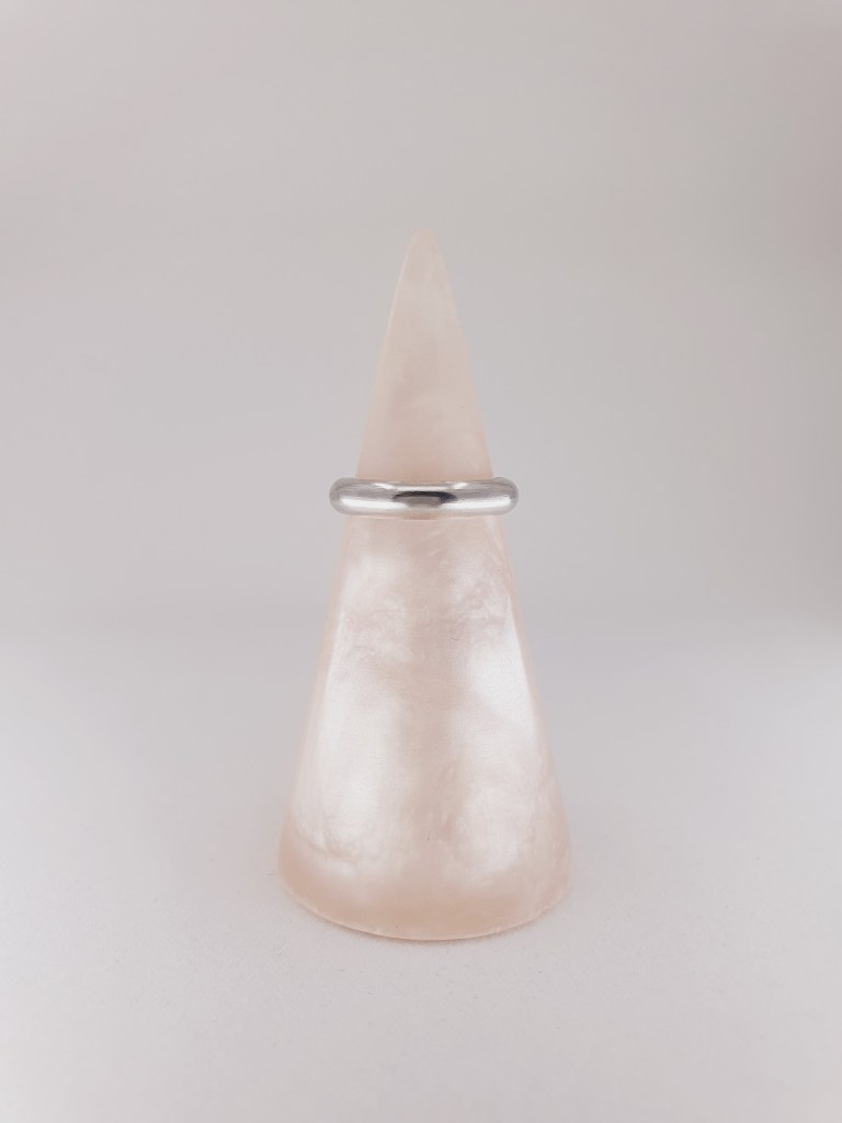 A 4 mm x 2 mm D-Shaped band, in a hammered, satin or shiny finish