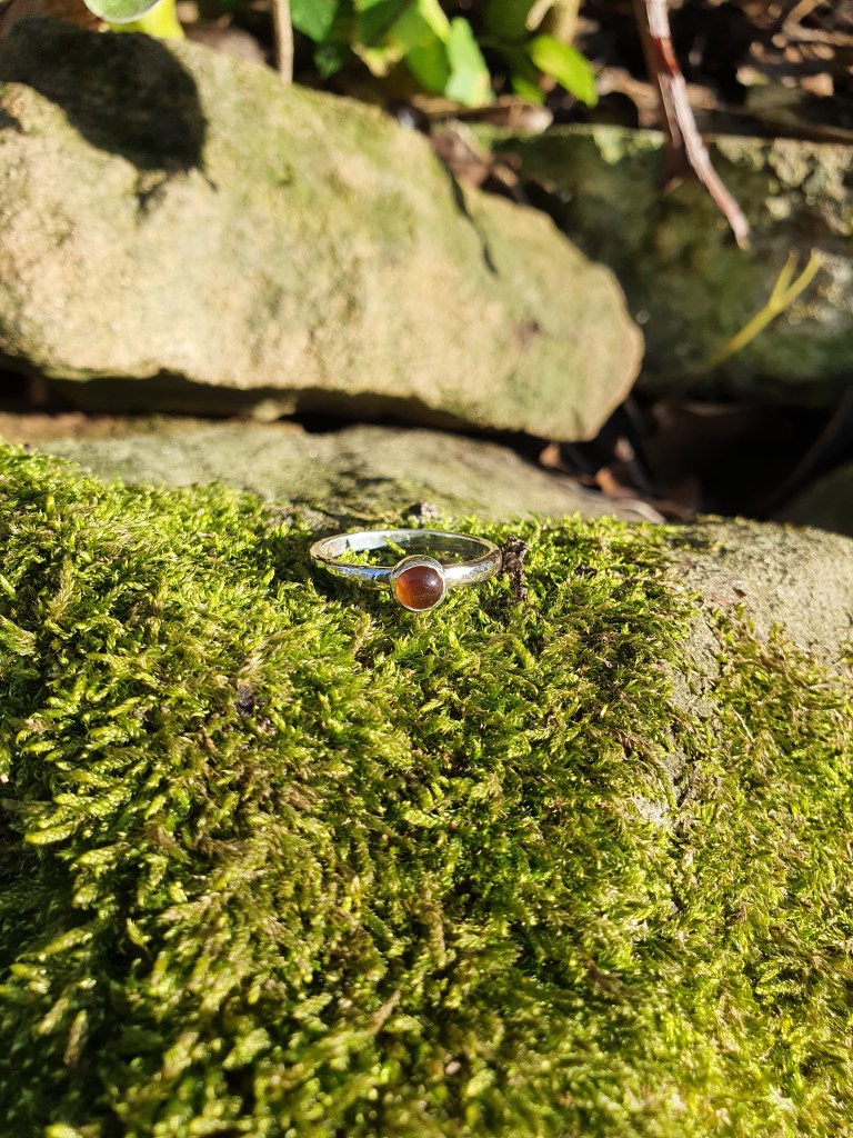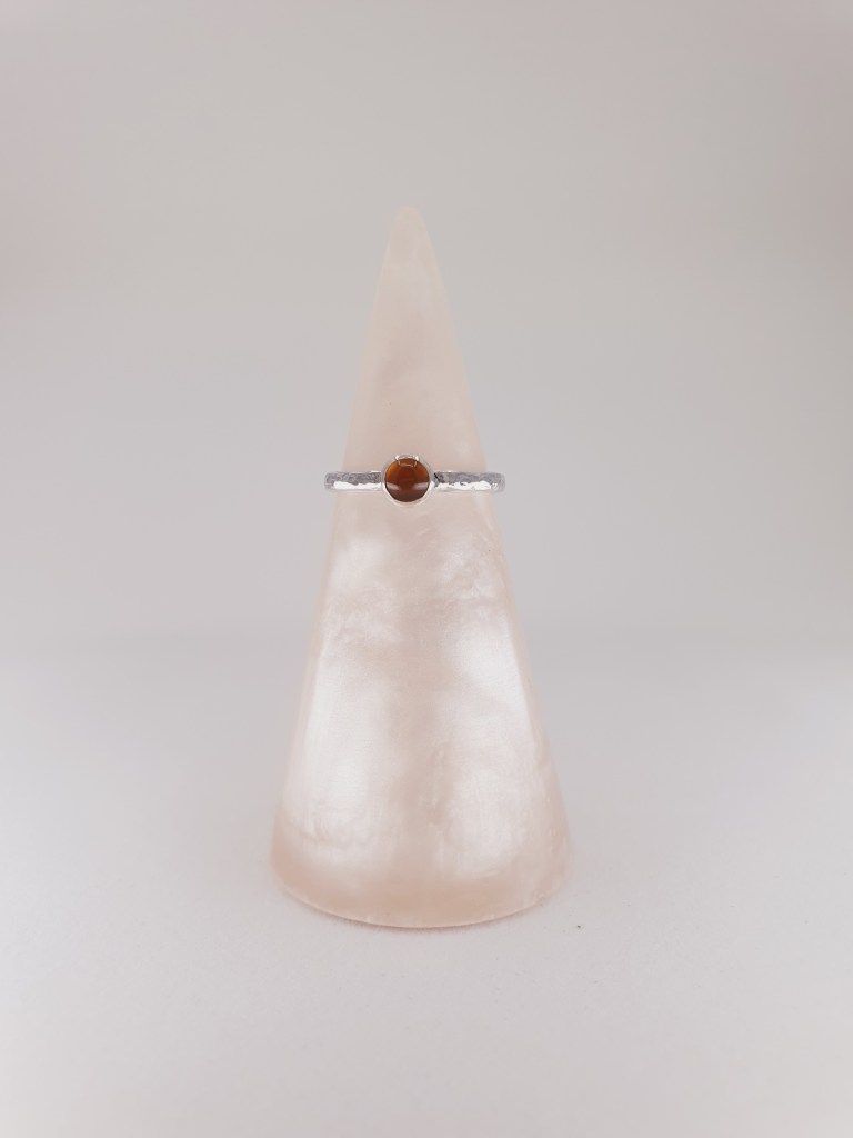 A 5mm citrine cabachon, set in a sterling silver bezel, on a slim sterling silver band.