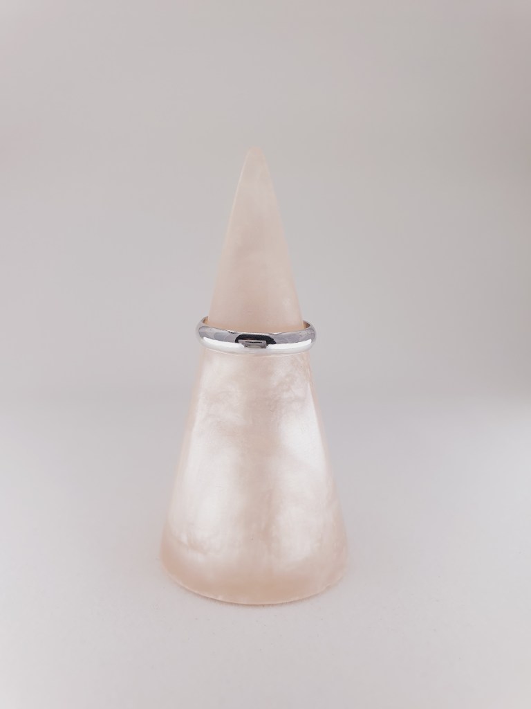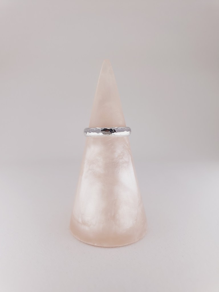 A 4 mm x 1.4 mm D-Shaped band, in a hammered, satin or shiny finish