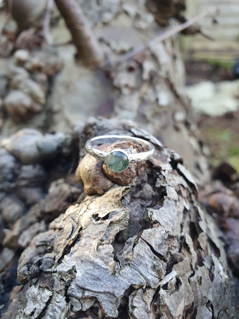 A 6mm stone, set in a sterling silver bezel, on a slim sterling silver band.
