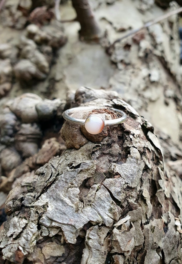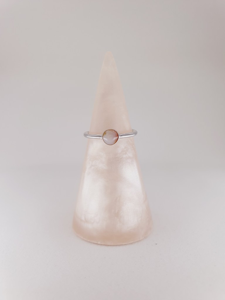 A 6mm stone, set in a sterling silver bezel, on a slim sterling silver band.