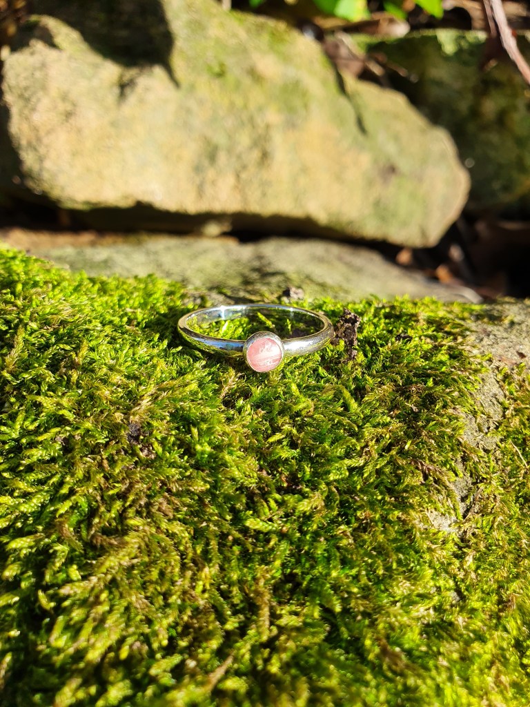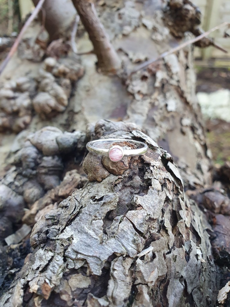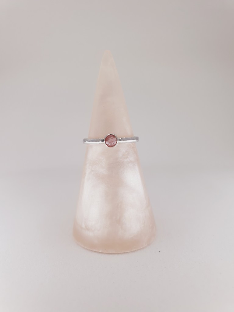 A 5mm stone, set in a sterling silver bezel, on a slim sterling silver band.